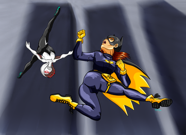 #barbaragordon #batgirl #batgirlfanart #comics #crossover #dccomics #dcuniverse #digitalpainting #marvel #marvelcomics #marvelfanart #marveluniverse #superheroines #gwenstacy #dccomicsfanart #spidergwen #crossoverfanart #spidergwenfanart