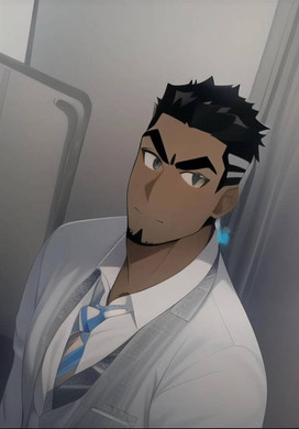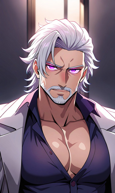 #ai #anime #blueeyes #bodyhair #chesthair #clinic #doctor #hairychest #handsome #hospital #hotmen #male #man #middleagedman #silverfox #silverhair #suit #whitebeard #whitehair #matureman #aiart #silverdaddy #novelai #novelaidiffusion