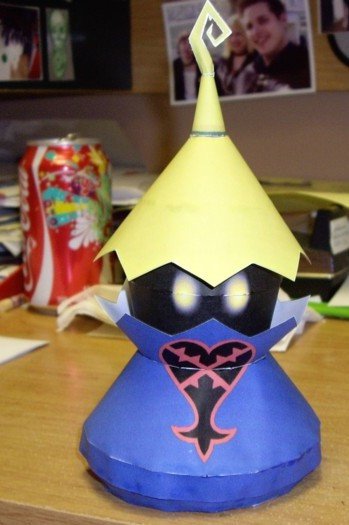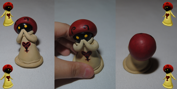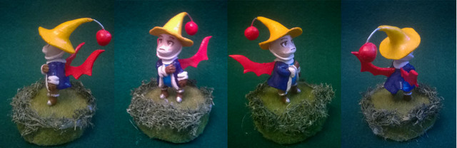 Little blizzard magic wielding heartless in Kingdom Hearts.I know his hat's a little bent, it fell down in the oven. Buuut I kept working anyway cause I spent too much time on him to scrap it.