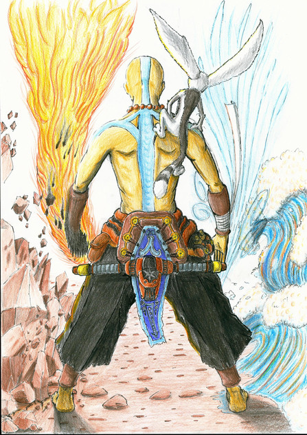 I drew a "ideal model"; avatar who is in harmony with all elements. Probably, the finale of the show should be nearly so? The world peace *)