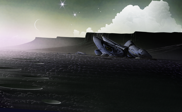 Beautiful.. perfectly composed, love that planet, and the atmo