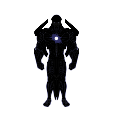 I didn't want to completely redesign him, as by and large I am happy with the original design, but there were details I wanted to update. One of them was to make Eschaton taller and wider, in the same proportions as the most recent iteration of Thunder Woman villain Dominus; since Eschaton draws from the same "brutish extraterrestrial conqueror" archetype, it only made sense to update him to match my update for Dominus. The other part was to make him visually more "visible" and less inscrutable; apart from the bright pale purple elements, the previous design's details are really hard to make out due to all the black in his design; this time I went for a dark gray, just light enough to make his design elements more apparent. And finally, I had come up with an idea to better represent the gaping hole in his torso made by Captain Meteor's arm, and for the most part I was able to execute my vision of the front end of that opening. Not that Eschaton seems to mind it all that much, being an entity who draws his power from the primordial abyss and physical manifestation of absolute annihilation.