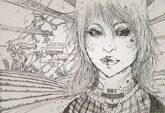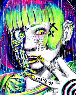#abstract #ai #collaboration #cyberpunk #cyborg #drawing #future #ink #linework #lowbrow #lsd #micron #mixedmedia #paint #pen #psychedelic #robot #scifi #sharpie #surreal #techno #technology #trippy #visionary #watercolor #weird #art