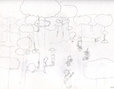 From left to right are Kahdar, Peregrine and Gate Guard Aidwain ... followed by two of the hired-hands. The three on the right are heading out on a patrol before relieving the guards stationed at the southern entrance. Two armoured spearmen and a crossbowman are typical for their border patrols. I kinda took a bit of license here and while i gave them all the same style of armour seen in the comics I went ahead and designed a helmet for them. The orange/brass bits feed off the crystal at the front and power warding spells to protect their heads. The crystals can also be used as flashlights