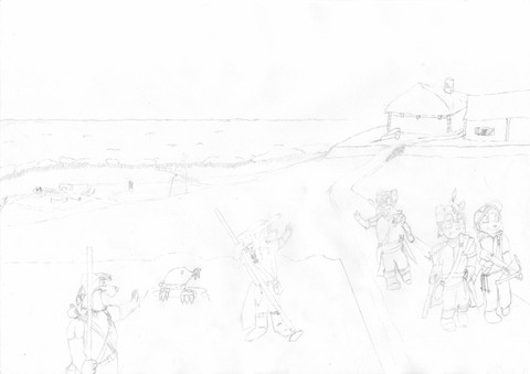 Okay, a more serious (re: put more effort into) pic here.The pic here is longshore farm as seen looking north from a point in the south western field. Visible are the homesteads, the fishery (and boardwalk), the windmill, the northern guard tower and, of course, dire swamp. (doesnt look that scary in daytime does it