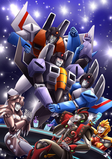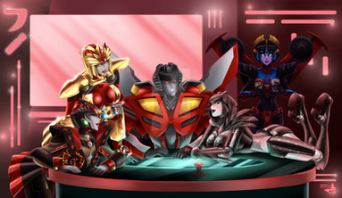 Coomission toSeekers are having fun without realizing that another known group is also on the beach. ( Starscream trying to use other hair style ). ^^