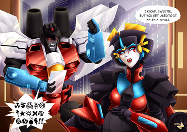 Probably like this.Β Starscream: "Even in human form,Β I'm stillΒ Hot!" XD