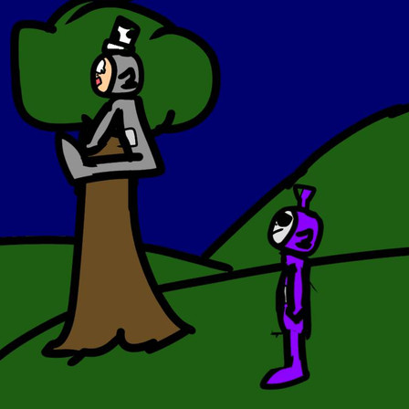 Me and my cousin were playing Slendytubbies, well, she was playing, I was watching, and she climbed a mountain and Alex looks to me and says."He can`t get us here right?"