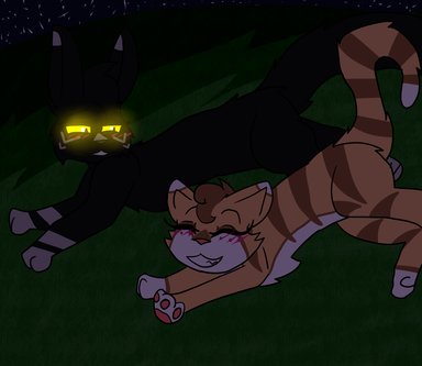 I was thinking like that they don't meet until the Dark Forest, and because they both are mourning having their families (since Hawkfrost does love Mothwing) and junk, and they kinda' just bond over that, I haven't thought about it much so I was only like planning on drawing it once, and not exploring it very much