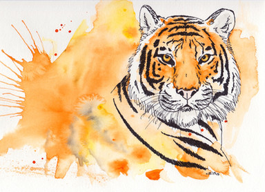 I finally did the #datutorialtiger : ). For me it was really fun to see how, step by step a tiger emerged at my paper. I coloured it with Albrecht DΓΌrer watercolour pencils, put on some fine liners on the contour and used watercolours for the background. I think my tiger looks a little angry, but that's ok : D
