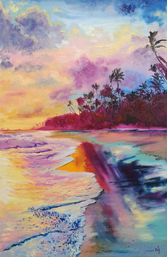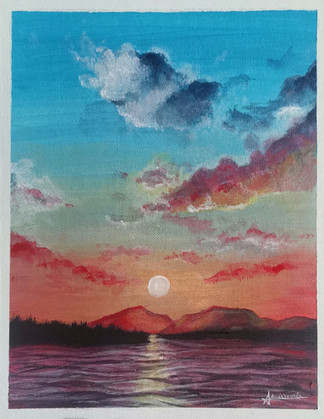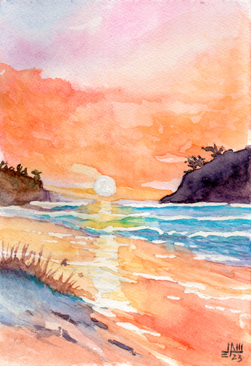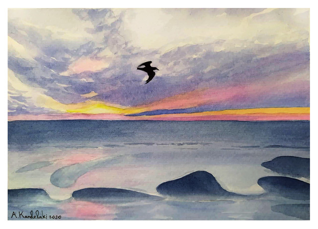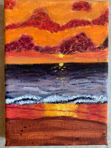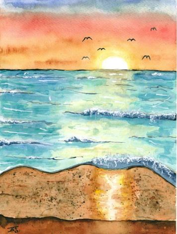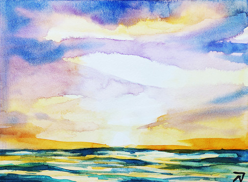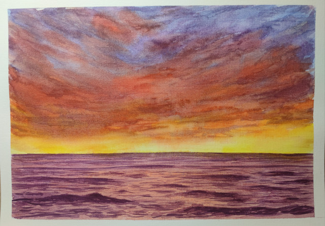 In my vacation time I followed the turorial of Ekaterina Smirnova and painted this colorful sunset at the beach .