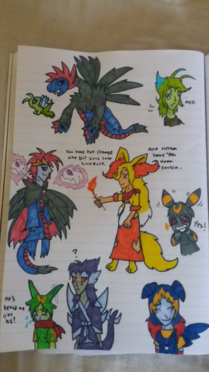 Here did my part of trade and did this in water color.Try my best to do there character and color didn't turn out right but at least it alright.