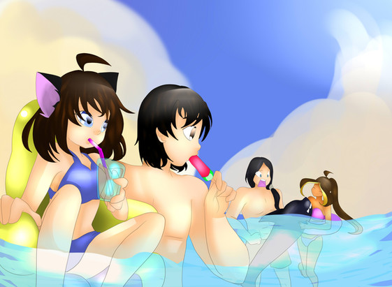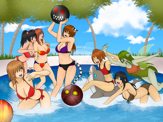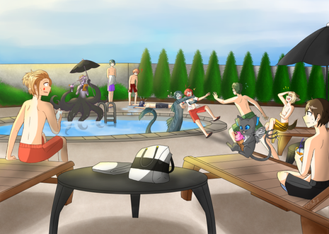 Cas: Demoness with more hair that anyone can handle clinging to the poolside