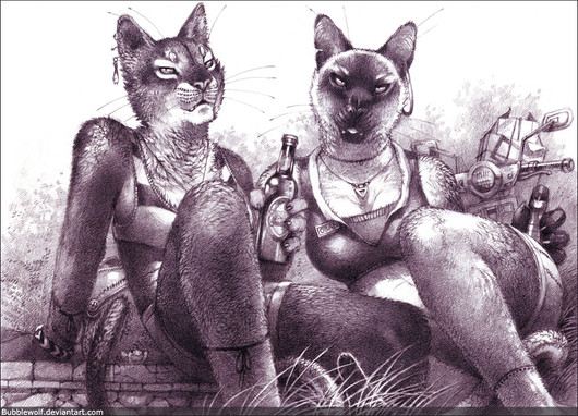 My goodness...! This is perhaps one of the best anthro pics I've seen in a long while. The detail in the sketching, the beauty of the lioness-woman... wow!