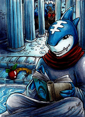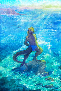 Definitely my favorite pic of yours, I love the environment and the lighting. The character is beautifully done, too! Dolphin anthros can be tough draw aesthetically but you did a great job.