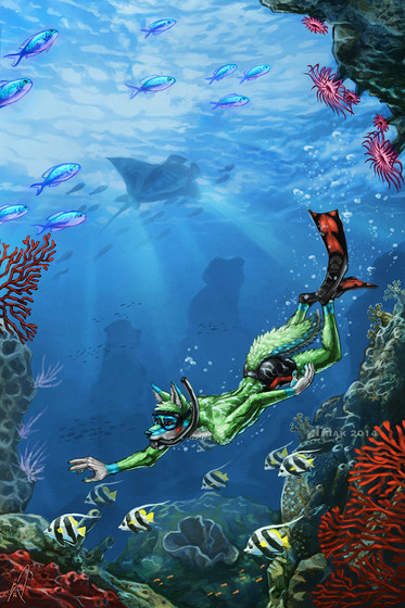 Love the lighter-blue highlighting and the luminescent coral banks.