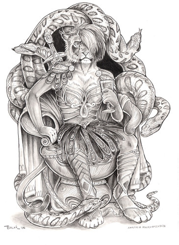 I like, that red shading gives this an eery look to it and helps to highlight the toned strength of the lioness, while it bounces off the eyes of the lynx making her look a little... evil.