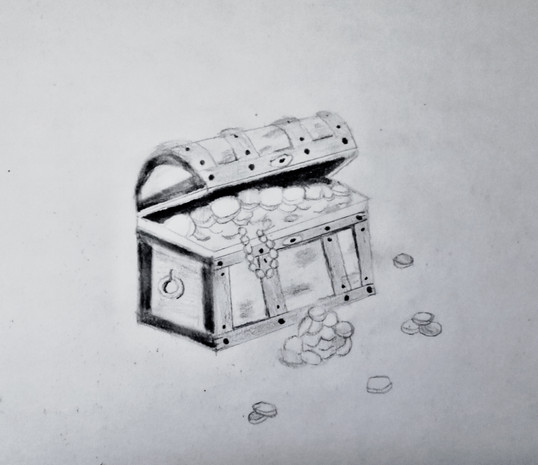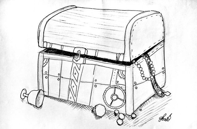 This is a fairly simple exercise that asks you to explore options for how dark or light you want your composition to be. I worked quickly on this and didn't put too much effort into it. I ultimately decided that most of the image will be high-key with the shells being low-key (because they're mostly white and I want that to be obvious). That strange little shape in the lid is an anchor I made with rainbow loom bands. I plan to make more to set in the lid that will help break up the space. I drew this from reference photos I took of my still life setup that I'll have on sta.sh at some point so you can see what I'm trying to draw. As with the practice still life from the 4th week, I'm going to have to ad lib shapes, this time in the lower half, to add interest to the composition.Enjoy!!