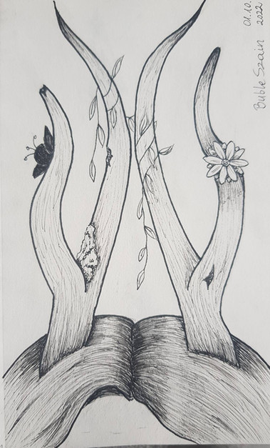 Lost in mind, lost in the world. Looking but not seeing.My little old hybrid, very old, very flat. I never was good at human anatomy, heads, hands, and feet are the worst for me, so I draw a rabbit version of these things 😅