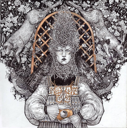 Book cover illustration made for "forthcoming poetry collection by Ruth Stacey, published by V.Press Poetry. The poems focus on different themes, including the shifting perspective of famous muses thrashing against their objectification, and the desire felt for the poet’s muse which places him in the same position. The poems include various themes, including: the desire and fire-like obsession of love; witchcraft and female power; mothering and anxiety for little children in the frightening world; animal shape-shifting to represent mixed-ethnicity in the character of a fox-boy; surviving mental illness; and the layering of voices when writing memoir and biography about muses like Jane Burden, Lizzie Siddal, Jeanne Hébuterne, Angelica Garnet and Camille Claudel.