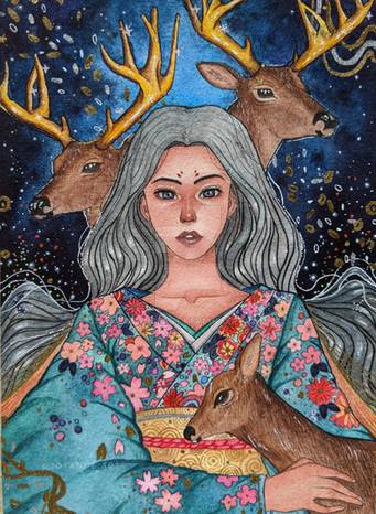 Reminds of Princess Mononoke and the God of the Forest - beautiful painting!