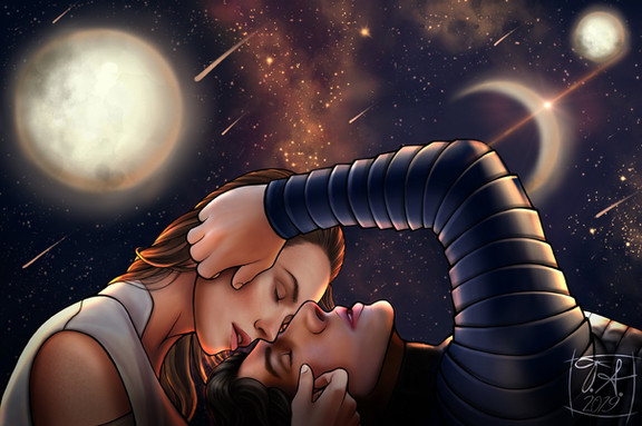 Chyba najbardziej mi się podobają wyrazy ich twarzy - zadziwienie Rey i skupienie Bena No i dodanie owocu granatu było świetnym pomysłem