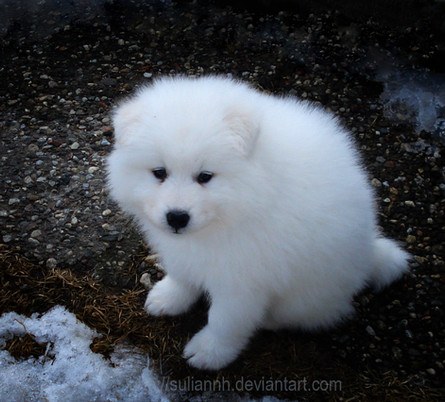 How kawaii, I have a girl samoyed (Mia) and she looks exactly alike, except she is fatter, lazier and hates the cold/snow!!