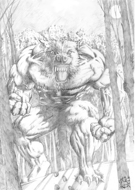 I like very much of horror histories but, werewolf is my favorite more than the others. I used 2B pencil and a reference of a wolf to make the head.Eu curto muito histórias de horror mas, o lobisomem é o meu favorito, mais do que os outros. Usei lápis 2B e uma referência de um lobo pra fazer a cabeça.