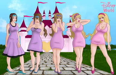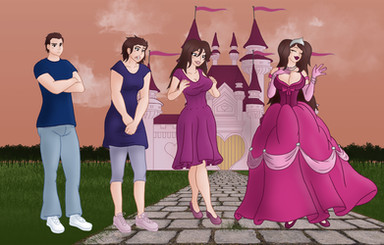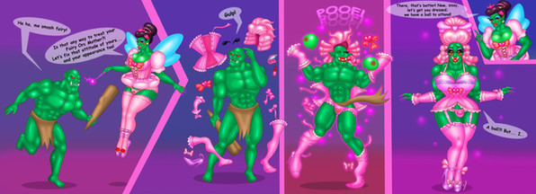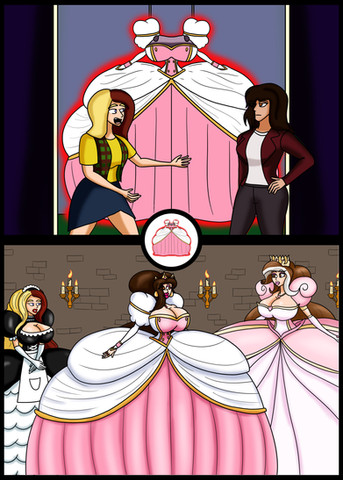 The billowing dress became a large shiny pink skirt with a big rainbow along each side. Steve felt his rear, hips, and thighs thicken and swell. They were big, but seemed even bigger due to the knew layered dress. His thin, but muscular midsection plumped giving him a chubby belly held tight by a rainbow corset with gold trim.