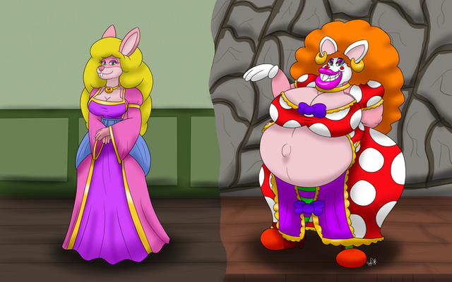 Steve squeezed his new boobs, shook his big butt, and patted his round belly. He felt amazing and was far from being embarrassed. He looked sexy and loved the oohs and awes from the audience, who were waiting for his answer. Yes, he thought. Being a big hot clown queen is what I want.