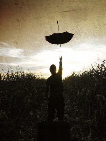 wow.. the embodiment of tranquility.. yet also the sharp contrast of the black coat against the sky and feather- i love the propensity for symbolism here, beautifully done..