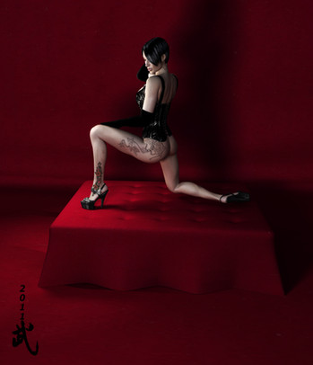 Beautiful!Β This looks like a professional pin-up style photo, with the model "baby-oiled".Β Great textures and lighting too.
