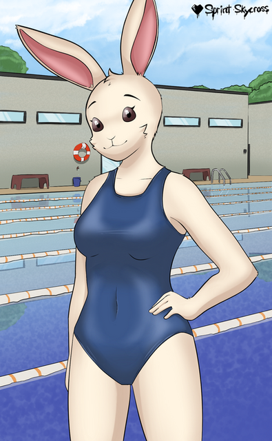 #bunny #female #goggles #oc #ruby #swimsuit #swimcap #buffbumblebee