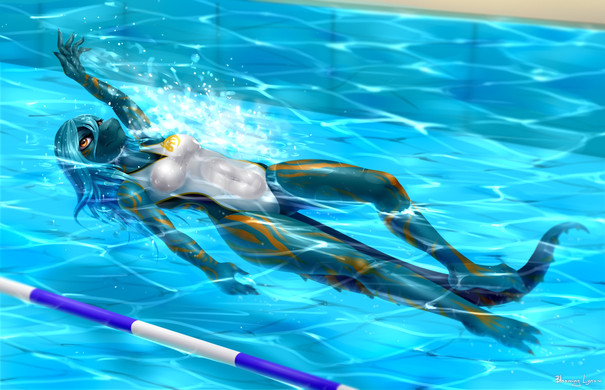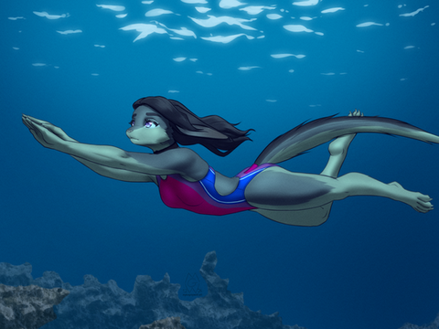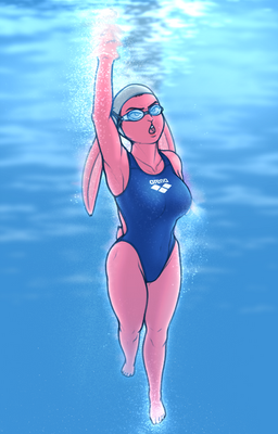 Recently I realized that it's almost been over 4 years since I've drawn Ruby actually swimming so due time to fix that. Wanted to emulate pictures of professionals you see around the internet. Heavily inspired by this image: Female-Swimmer.jpg (1200×628) (netdna-ssl.com)The swimsuit in this one is a variation of the Speedo Fast Skin EX 83OC-35222, which was a collaboration between Speedo and Mizuno back in 2004. Even made a decent Speedo Sharkskin pattern for this one.