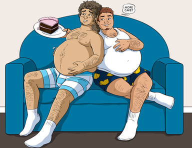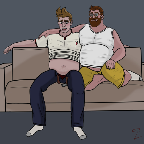 I got to have a ton of fun drawing two new characters for ReturnMac !Alex, Trevor and Kevin look like they're having a nice time snacking and relaxing, just what Trevor needs being pregnant!