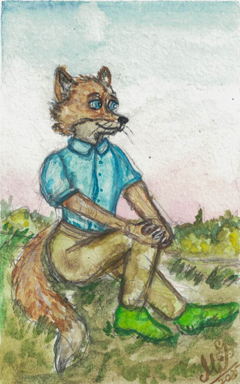 this one is for my lil bro's xmas card. from uncle remus stories again ^^ came out a little better than mr. brer fox.watercolour and pencil