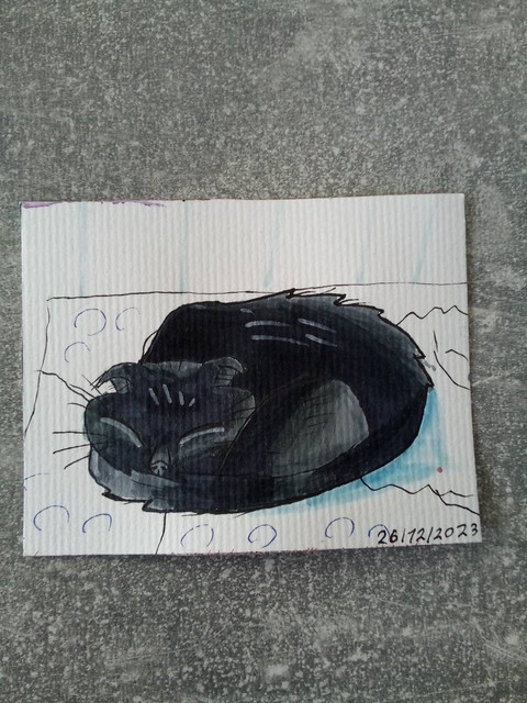 Acuarela sobre cartΓ³n de caja de cereales.29 de noviembre de 2023