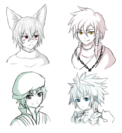 Most headshots were reused from older drawings, but some such as Nao's normal/demon appearance, Haru and Shiramatsu were edits/completion of previous sketches.