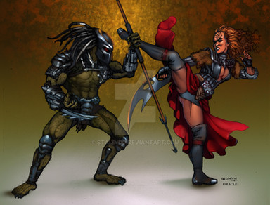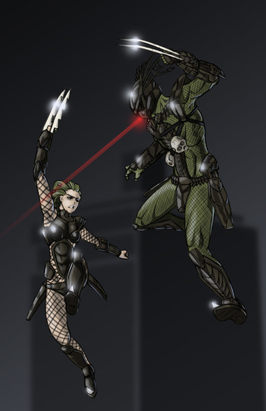 Just for kicks: a crossover between Regeneratorum's Sonseeahray and a Yautja Predator. I figure that Sonny was created to hunt genetically engineered weapons, Yautja are hunters of dangerous creatures...maybe there was a team up? Besides, Sonny is part alien anyway, so there's that.ΒYautja are (c) by Disney now (I believe...I think they bought the rights to it)
