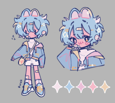 character i made originally to sell, but i became really attached as i was drawing them.. i have a very weird and sentimental attachment to the y2k aesthetic, which is what i was looking at for inspiration when i made them.----