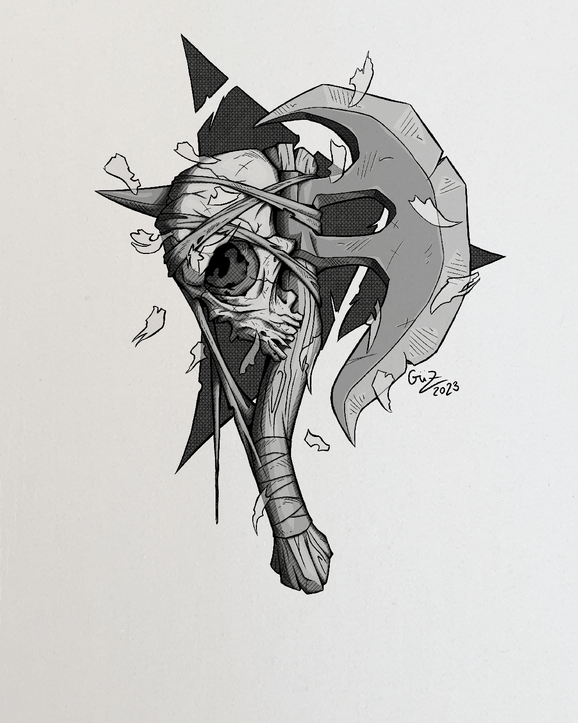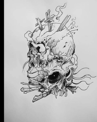 #bone #dark #pen #pencil #hammer #pencildrawing #pencilshading #skull #tattoodesign #skulldrawing #arttraditional #weaponconcept