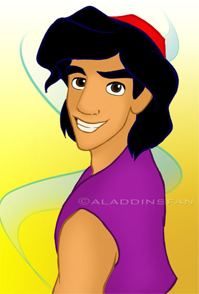 every time i see aladdin i look at his hair, its like a puff ball, LOL when im watching the movie im just like O-o is some one going to het the fluff off his head or what???