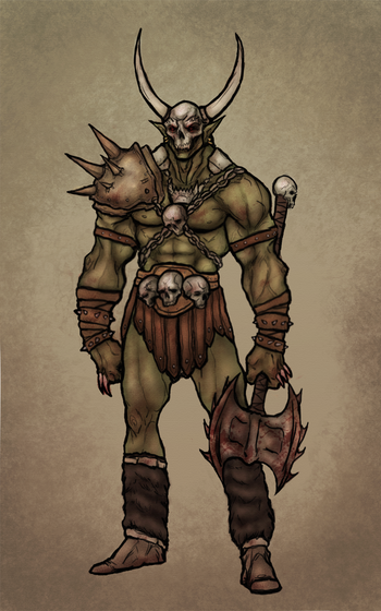 ME ORKY!Orc champion/berserker/whathaveyou. I initially made him with a helm. But it was "too grunt-looking to be a champion," said some friends of mine.