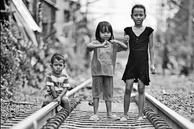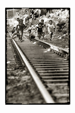 a really nice picture - composition, framing, contrast, etc. although I would never have guessed at these childrens' perilous existence along railway lines from the picture itself. you perhaps did this in other shots, but it would have been nice to make this clearer and more explicit in this picture. still, a very very nice image.