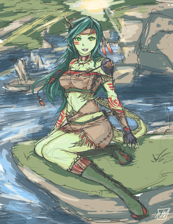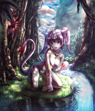 wow thats an awesome coloring job there. O.O i love the water and the scales on the tail. nice color choices, it looks like she's in an elf forest or something made of sherbet or something delicious like that XD