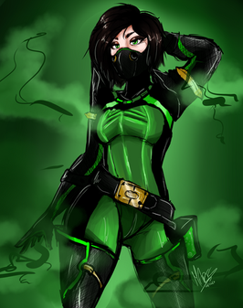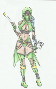 2016 Sketch #125: Scorpia (female successor to Scorpion) Assassin. Yet another Sinister Six Demon, she is able to turn her hair braid into a deadly scorpion tail at will that can extend and shred her opponents to pieces. Her braid becomes the equivalent of a kusarigama and proves to be versatile for both offense and defense amongst the other SInister Six Demons.ΒTook elements of Scorpion, Scorpia, Scorpina (MMPR) and Cell (DBZ) mixed it around in my head with some samurai elements and.... this is what came of it. I really did enjoy the design and mixing white lotus elements with all the green
