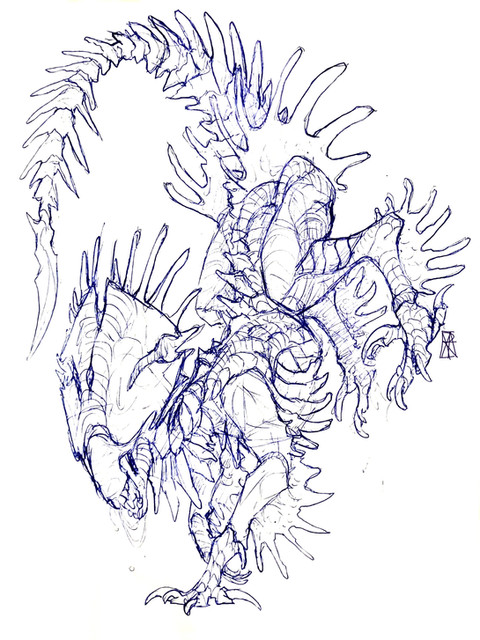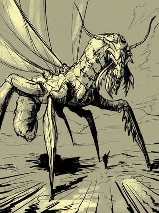 This one had multiple versions of it somewhere (with different legs), but it's a pretty meaningful piece to me as it was the first "giant insect" I'd ever designed in this way in my sketchbook.I remember doing it the day after I came home from ArtCenter's precollege, I think I was 16 at the time.