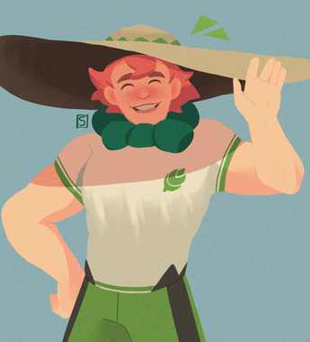 hi i haven't played pokemon shield in a hot minute but i love Milo's design! he's perfect!!! (his only flaw is that his shorts are too long 😔)i'm currently working on a print but i needed a break from that so have this doodle i spent the past few days on :3