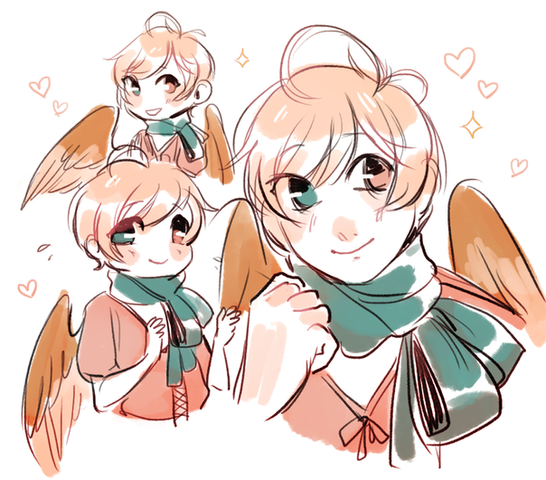 So cute! Anyway I think you did a great work even if hands, wings and gesture are hard to drawing as you said.