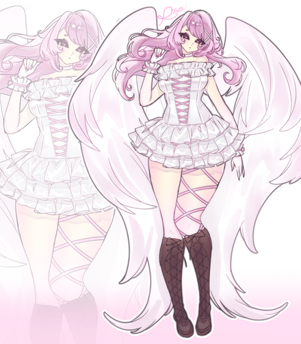 Dang there's so much to love about this. The dress and pose is so elegant, the details of the wings and the flowers are really nice, and I can't get enough of the hair colour! *A*